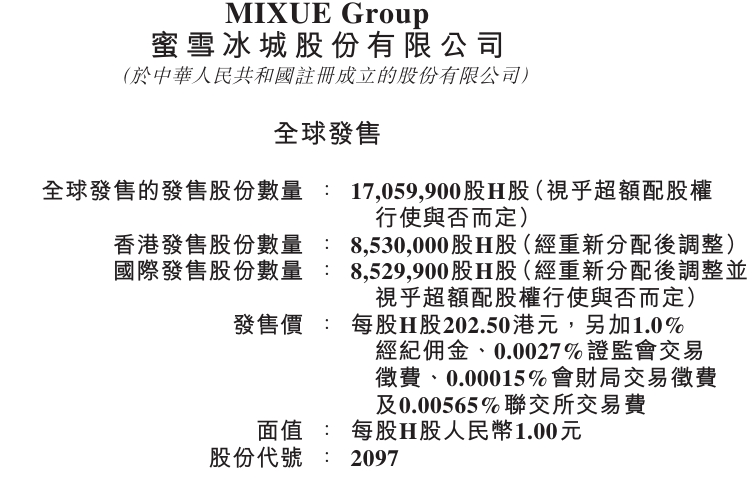 44 03-18 12:46蜜雪集团:IPO最终价格为202.5港元/股
